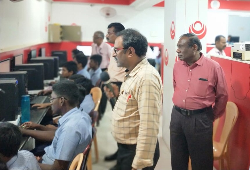The founder Chairman, Directors, Resource Persons Dr.Sai Prasad & Dr.Lakshmana Moorthy encouraging the students Practicing GeoGebra