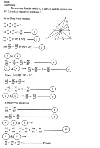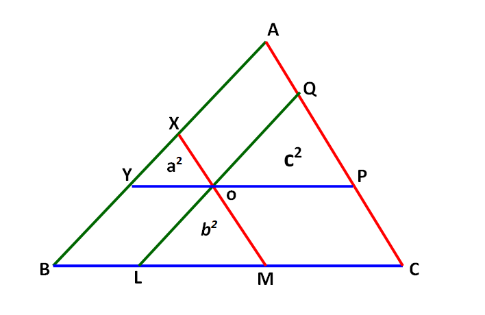 In the adjoining figure, the lines LQ, YP and XM have been drawn parallel to the sides AB, BC and AC respectively through the point ‘O’ lying inside ΔABC. If the areas of Δ OXY , Δ OLM and Δ OPQ are a